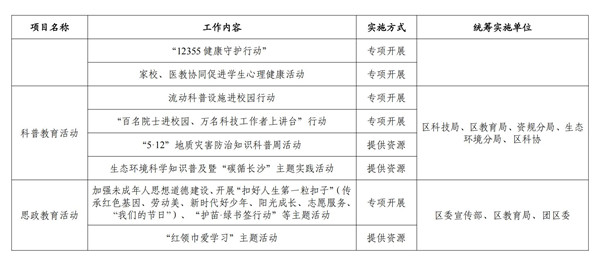 三、做细“程序关”。严格落实教育“进校园”项目年度计划管理制度,对计划外确需开展的项目,应确认其政策依据的权威性、时效性,并评估其实际成效;除涉及师生的业务性活动外,其余项目必须报区委教育工作领导小组审定。各类教育“进校园”项目由教育行政部门统筹归口,实行分类管理。专项开展的,由牵头部门制定实施方案,组织相关人员和教育资源,有序进入学校开展。提供资源开展的,由牵头单位提供教育视频、宣传材料、宣讲人员等,教育行政部门组织中小学校自主开展。注重教育实效,减轻学校负担,除确有需要外,一般不得围绕同一主题部署多种形式的评比竞赛事项、不得要求学校传送活动视频图片等资料、不得明示或暗示学生购买相关教材器具,坚决杜绝以开展教育为名安排师生执勤巡查、拍照打卡、填表报数以及参加凑人头、造声势的形式主义活动。持续整治各种搭车转嫁、违规摊派行为,严禁安排教师承担各种非教育教学任务。严格执行进校园项目“赋码亮码”制度,相关单位在开展涉校督查检查考核、社会事务进校园等工作前,须在湖南省无扰督查系统平台申报,审核通过后方可开展,进学校开展工作时应主动向学校“亮码”接受监督。